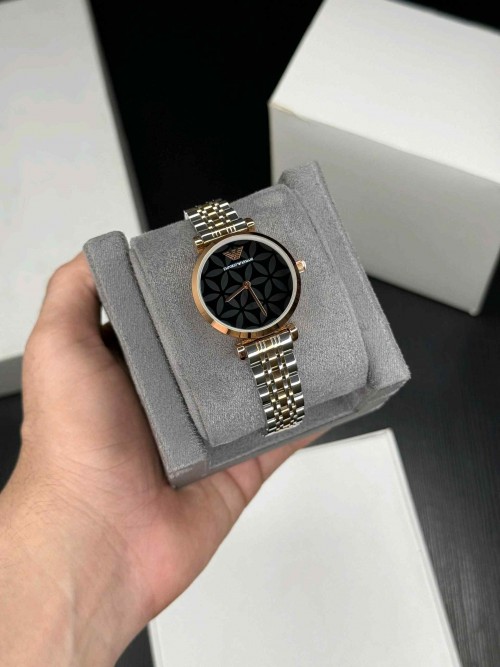 emporio armani_ tow tone rose black watch for her womens girls